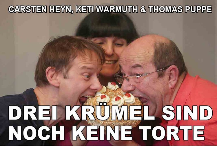 Eine Torte ist nur so gehaltvoll, wie die Krümel aus denen sie besteht. Doch sind wir nich alle nur ein Krümel in der Backstube des Lebens? Wer fragt uns schon - uns, die kleinen Krümel? Was macht man als Kuchenkrümel, wenn man eine Glutenunverträglichkeit hat? Zucker zu Zucker und Mehl zu Mehl? Aber wir lassen uns nicht einfach zusammenkehren und unter den Teppich fegen. Oder zu Rumkugeln verarbeiten! Niemals! Krümel aller Backwerke vereinigt euch! Ein Programm mit vielen lustigen Zutaten, den Krümeln Carsten Heyn und Thomas Puppe sowie K...